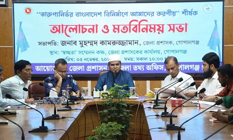 গোপালগঞ্জ প্রতিনিধি : গোপালগঞ্জে "তারুণ্যনির্ভর বাংলাদেশ বিনির্মাণে আমাদের করণীয়" শীর্ষক আলোচনা ও মতবিনিময় সভা অনুষ্ঠিত হয়েছে।